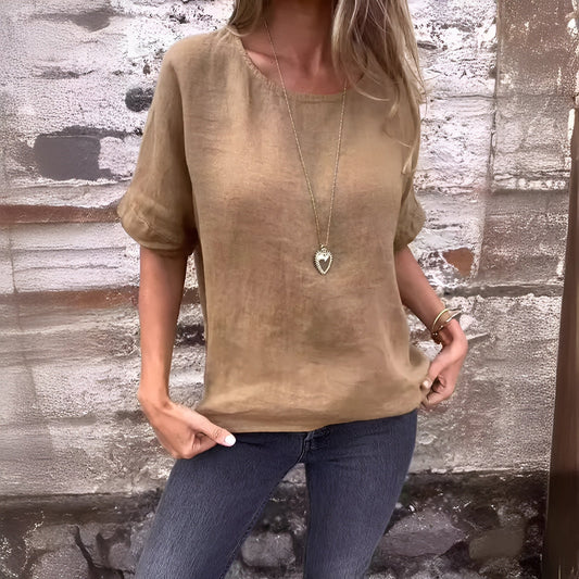 YLVIE I KLASSISCHE LEINENBLUSE MIT V-AUSSCHNITT