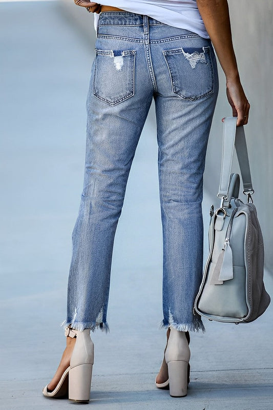 ReduziertDistressed Raw Hem Straight Leg Jeans