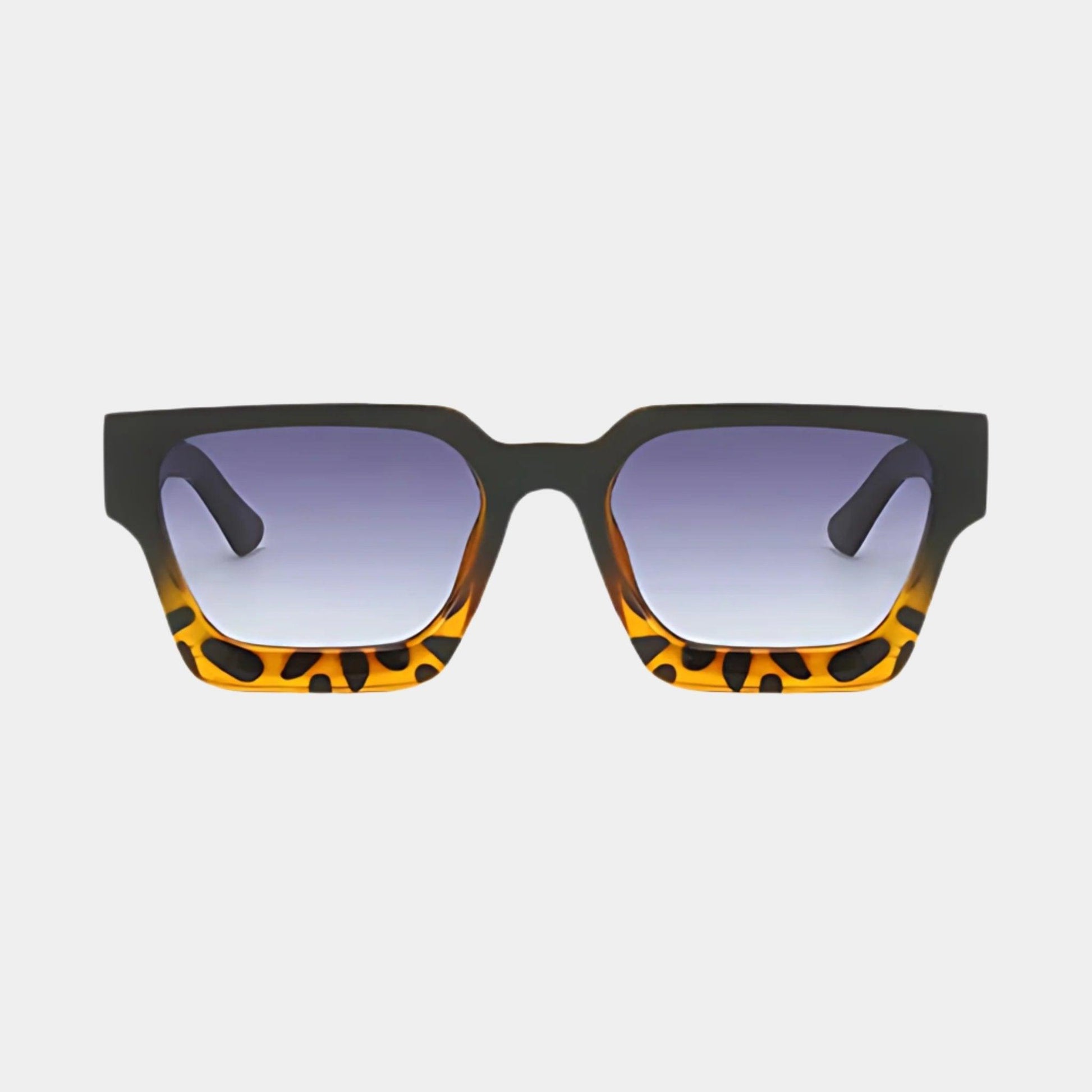 Die Manno Nada ist mit ihrem markanten, schwarz-leoparden, eckigen Rahmen und den tiefvioletten Verlaufsgläsern mit UV-Schutz ein vielseitiges Accessoire – ideal für glamouröse Anlässe ebenso wie für den Alltag.