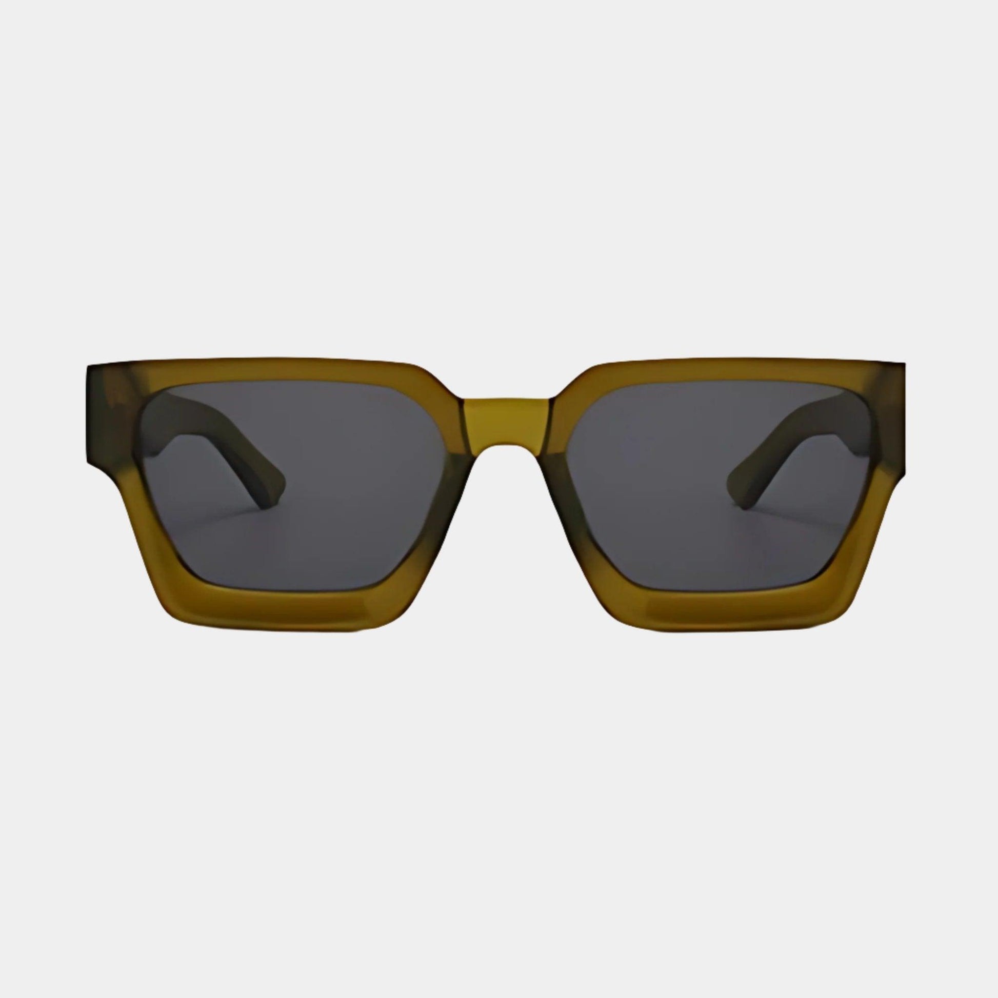 Die Manno Olive Noir ist mit ihrem markanten olivgrünen, eckigen Rahmen und den tiefgrauen Gläsern mit UV-Schutz ein vielseitiges Accessoire – ideal für glamouröse Anlässe ebenso wie für den Alltag.