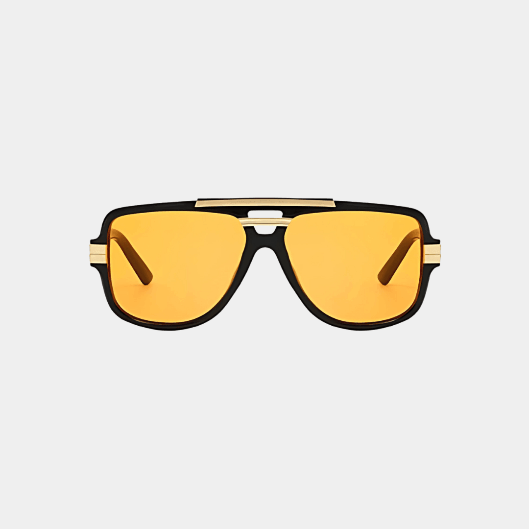 Mit der Zevaro Aviator Sonnenbrille trifft die Eleganz des alten Geldes auf die Extravaganz des neuen Geldes. Mit ihrem eleganten Doppelbrückenrahmen, goldenen Highlights und tiefen, luxuriösen Polycarbonatgläsern strahlt diese Sonnenbrille den Glamour der Elite von Marbella aus.
