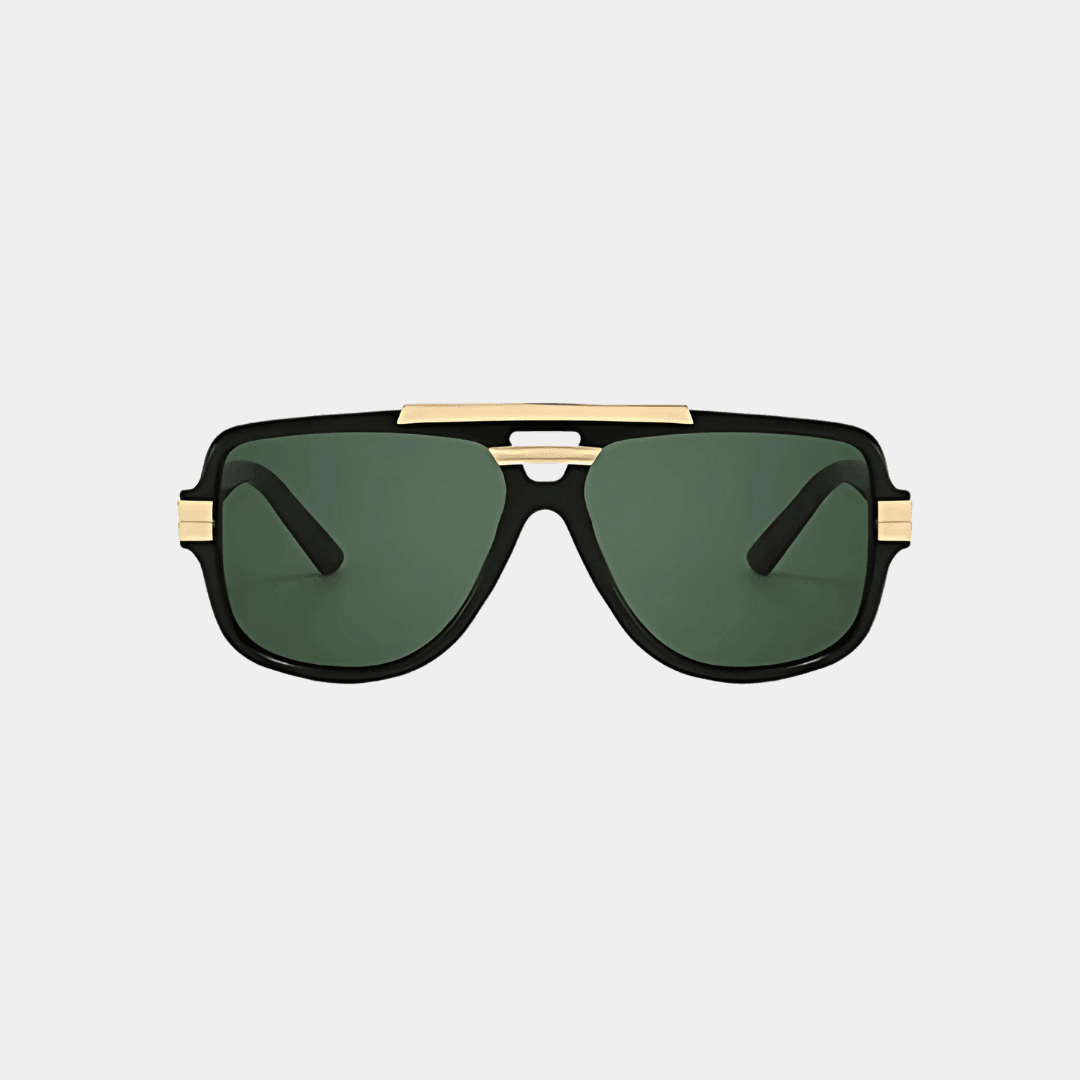 Mit der Zevaro Aviator Sonnenbrille trifft die Eleganz des alten Geldes auf die Extravaganz des neuen Geldes. Mit ihrem eleganten Doppelbrückenrahmen, goldenen Highlights und tiefen, luxuriösen Polycarbonatgläsern strahlt diese Sonnenbrille den Glamour der Elite von Marbella aus.