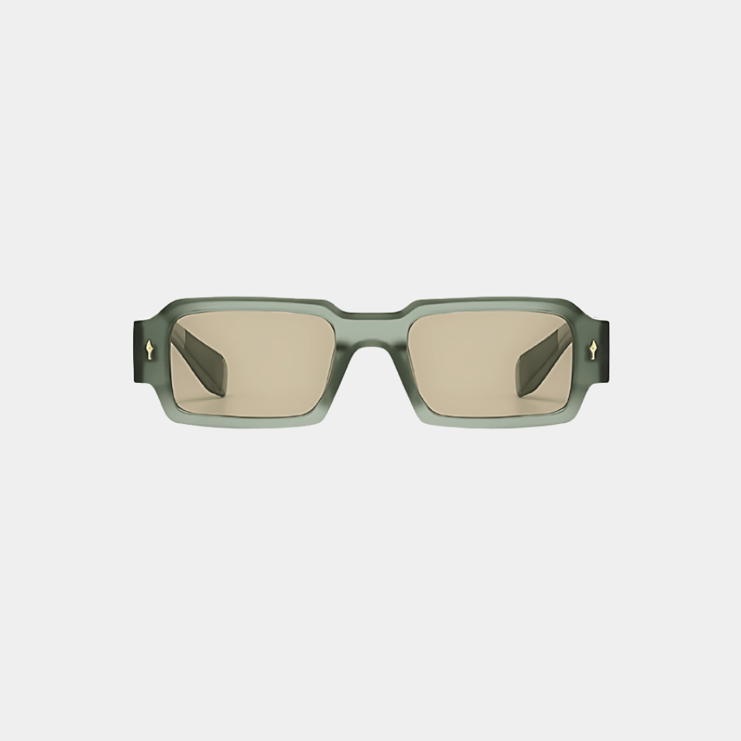 Die Marell mit einem tief moosgrünen Rahmen und perfekt abgestimmten, teegetönten Gläsern mit UV-Schutz ist ein stilvoller Klassiker – ideal für den roten Teppich, die Strandpromenade oder ein elegantes Gala-Dinner. Das klassische, eckige Design mit goldenen Details verleiht jedem Outfit eine edle Note.